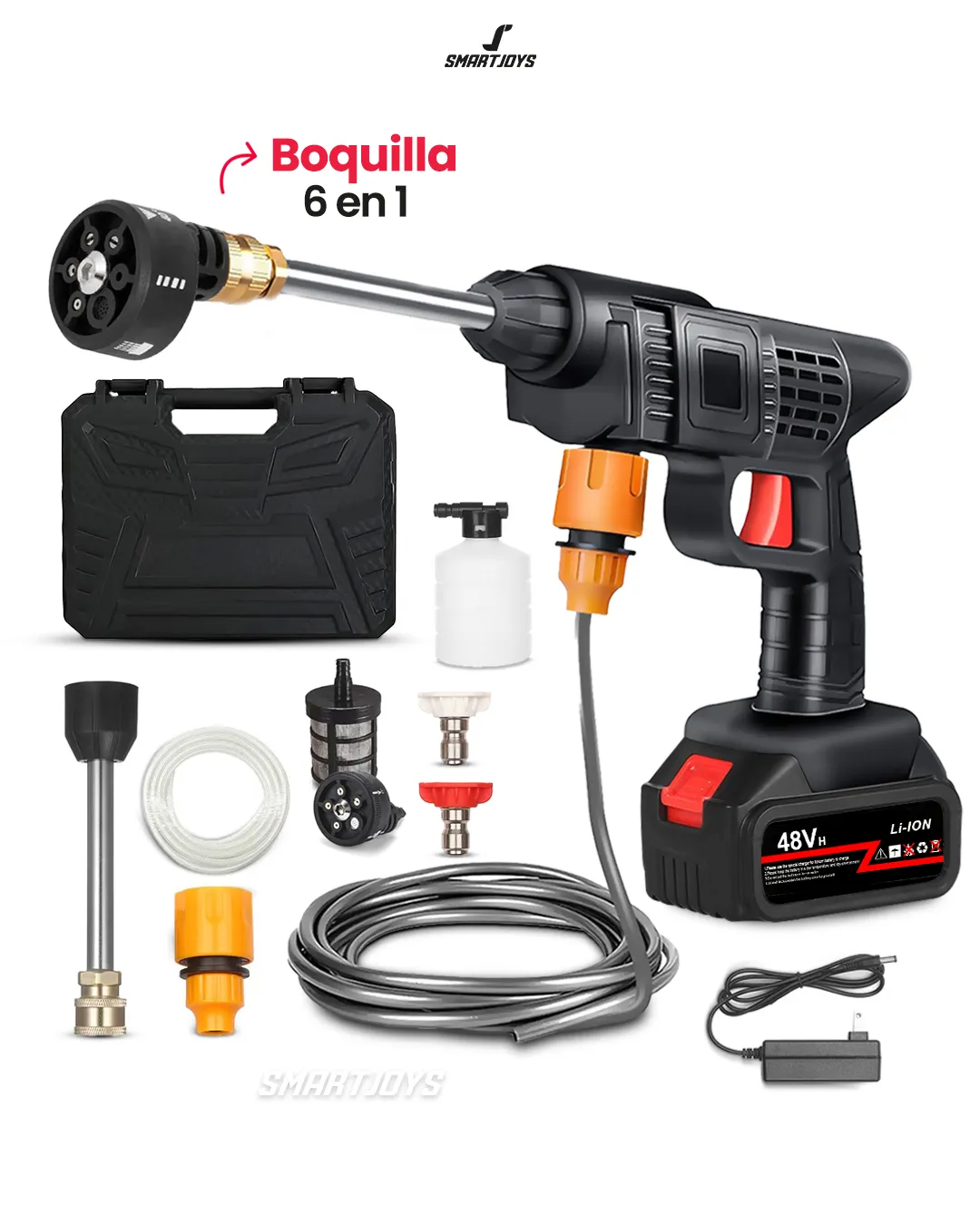 • Hidrolavadora 6 chorros: Potente para eliminar suciedad difícil en superficies de tu hogar y vehículo. 💦