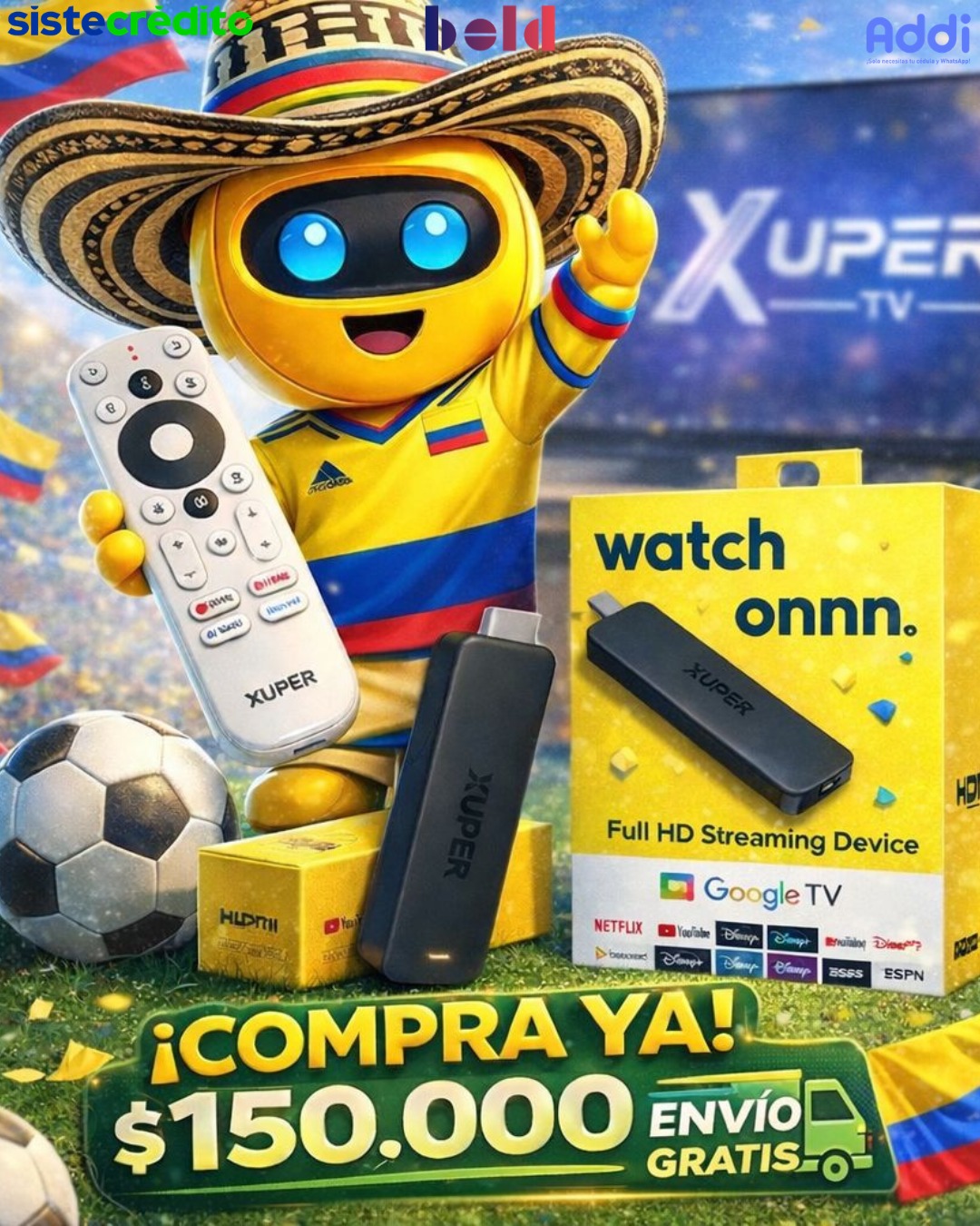 Convierte tu televisor en un Smart TV de forma rápida y sencilla. Este TV Stick te permite disfrutar tus plataformas favoritas en Full HD 1080p, con navegación fluida y acceso a múltiples aplicaciones gracias a su sistema Google TV. Ideal para entretenimiento en casa con excelente calidad de imagen y sonido.